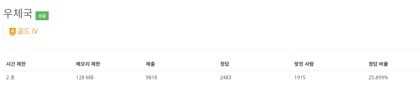 따라서 총 인구수를 구한다음, 누적 인구수를 구하면서 절반으로 나눠지는 위치에 우체국을 설치하면 된다!
