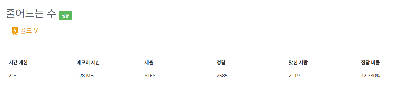음이 아닌 정수를 십진법으로 표기했을 때, 왼쪽에서부터 자리수가 감소할 때, 그 수를 줄어드는 수라고 한다. 예를 들어, 321와 950은 줄어드는 수이고, 322와 958은 아니다.