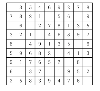스도쿠 판을 채우는 방법이 여럿인 경우는 그 중 하나만을 출력한다.