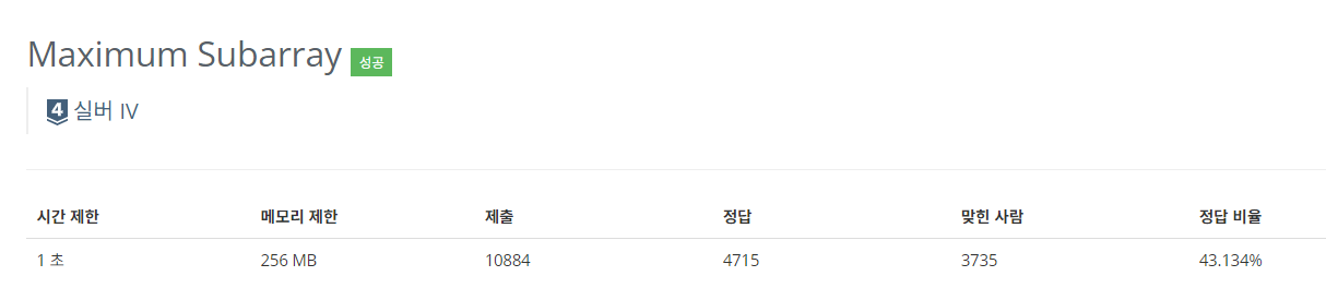 크기 N인 정수형 배열 X가 있을 때, X의 부분 배열(X의 연속한 일부분) 중 각 원소의 합이 가장 큰 부분 배열을 찾는 Maximum subarray problem(최대 부분배열 문제)은 컴퓨터 과학에서 매우 잘 알려져 있다.
