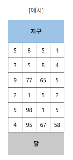 우주비행이 꿈이였던 진우는 음식점 '매일매일싱싱'에서 열심히 일한 결과 달 여행에 필요한 자금을 모두 마련하였다! 지구와 우주사이는 N X M 행렬로 나타낼 수 있으며 각 원소의 값은 우주선이 그 공간을 지날 때 소모되는 연료의 양이다.