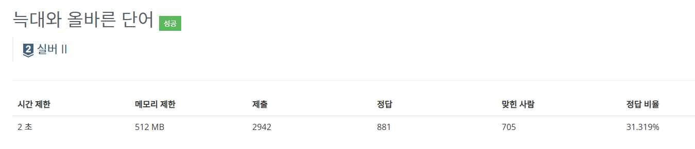 - 1번과 2번 조건으로 만들 수 있는 단어만 올바른 단어이다.