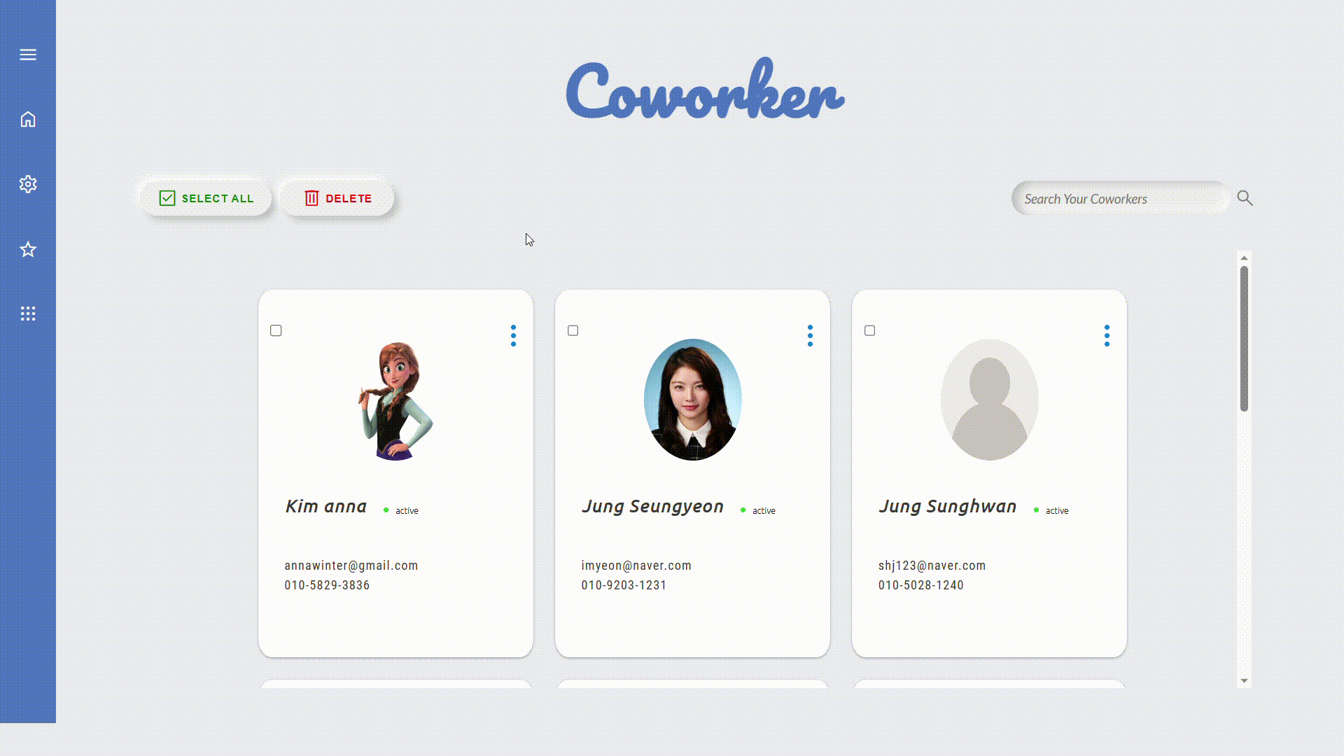 선택된 직원들을 delete 버튼을 누르면 삭제할 수 있게 구현하였다